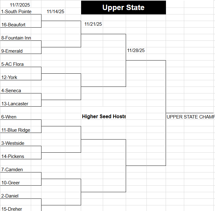 - South Pointe (1) begins at home versus Beaufort (16).