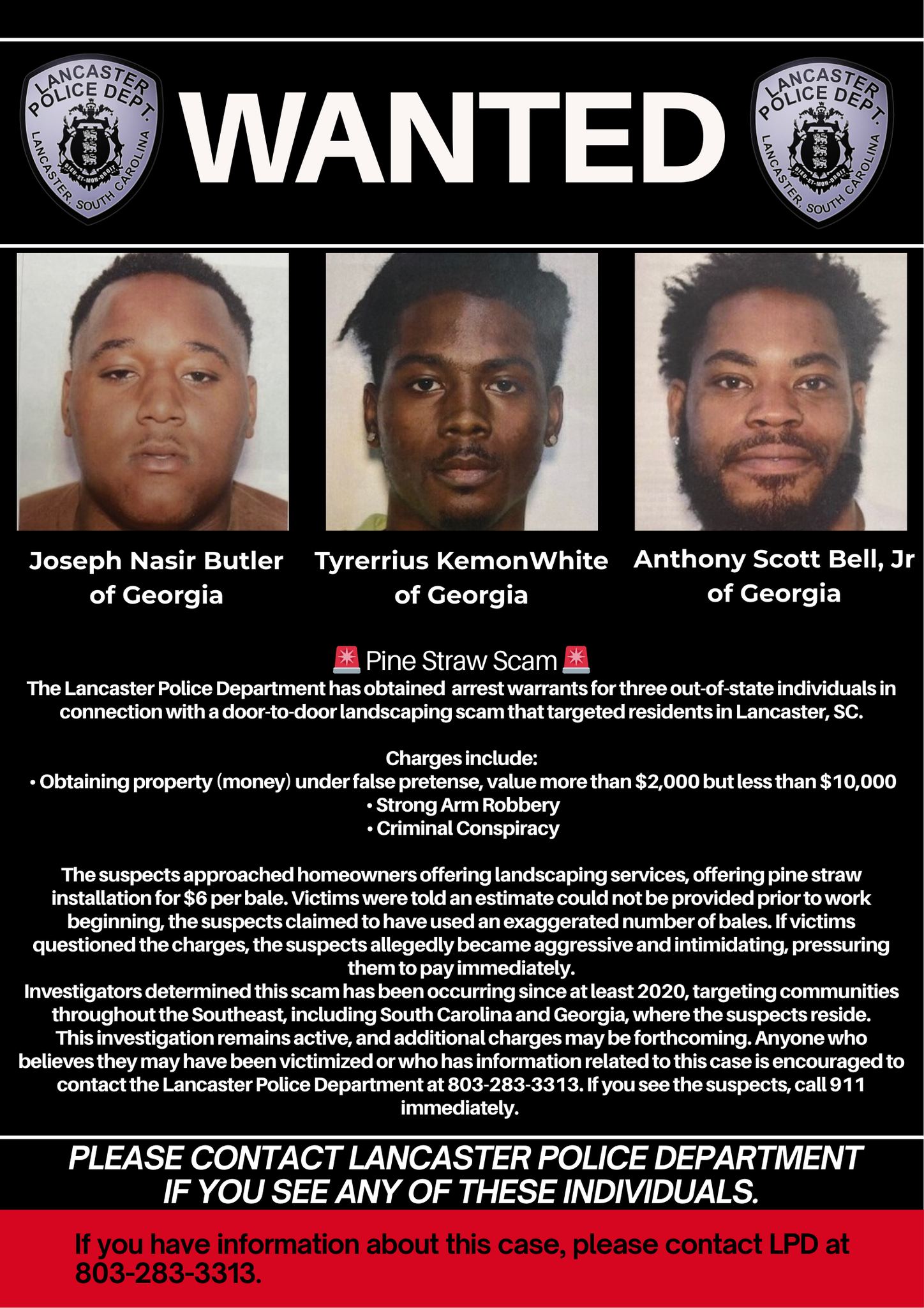 Have Information? If you have been victimized by this group or have information on their whereabouts, contact the Lancaster Police at 803-283-3313.