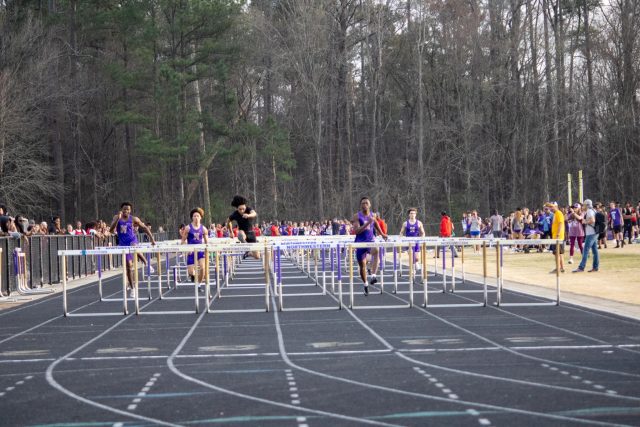 Nation Ford’s Alex Royall was equally dominant in the distance events. Royall pulled off a difficult “distance double,” taking first place in both the 1,600-meter run (4:36.60) and the 3,200-meter run (10:24.08).