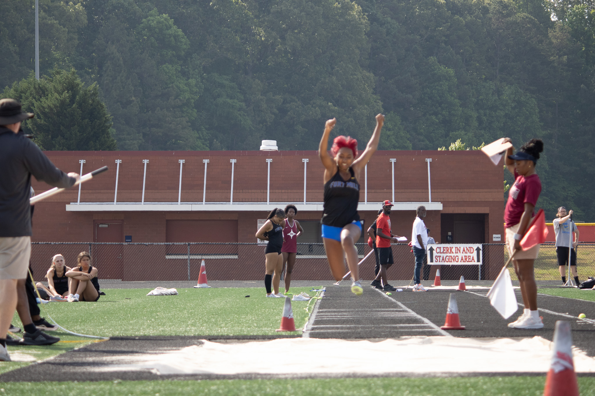 Fort Mill’s Mia Williams was the meet’s most prolific individual scorer, sweeping four events. Williams won the 100 meters in 12.39, the 200 meters in 24.92, the long jump at 17 feet 6.25 inches and the triple jump at 37 feet 3.75 inches. Her 40 points alone accounted for roughly a third of the Yellow Jackets’ team total.
