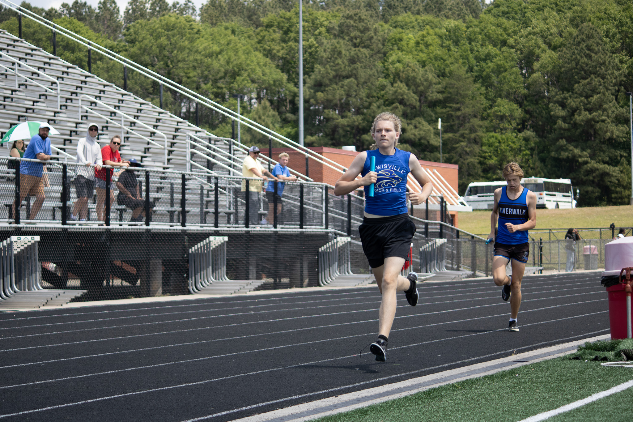 The boys 4×100 relay produced an unusual finish, with only Rock Hill (41.73) and South Pointe (41.78) crossing the line. Lancaster and Clover were disqualified, and Fort Mill, Buford and Nation Ford did not start.
