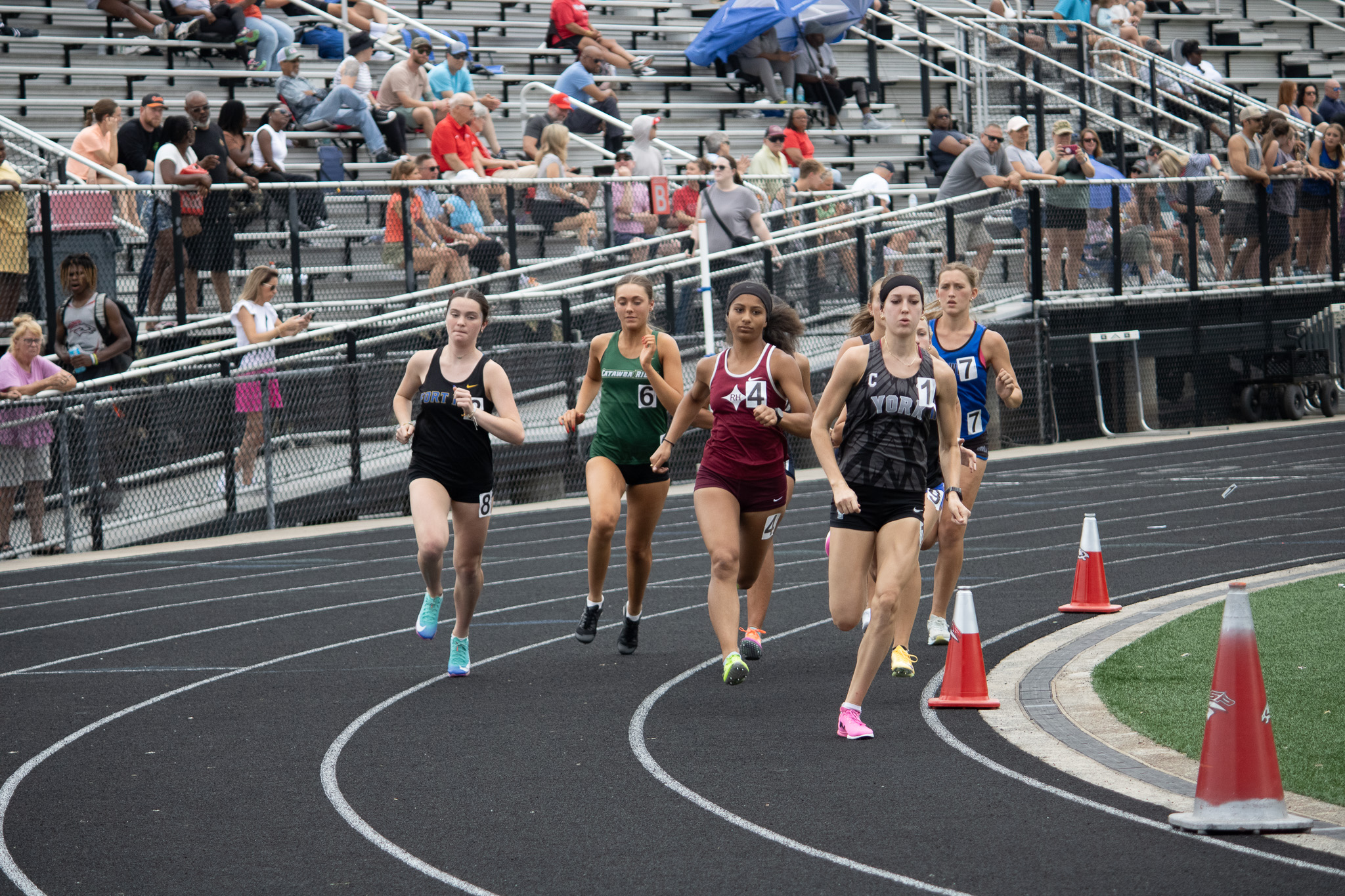 Fort Mill’s Jahzir McCants edged Rock Hill’s Jaderion Moore for the boys 400 meter title, 49.15 to 49.27. Nation Ford finished one two in the girls 400, with Madison Brailsford winning in 1:00.04 and Laia Green close behind at 1:00.69.