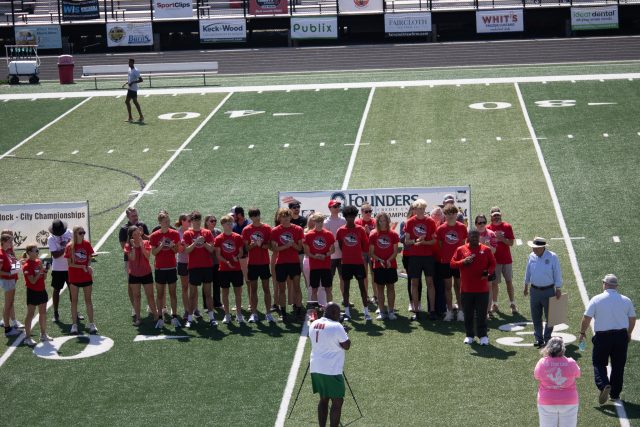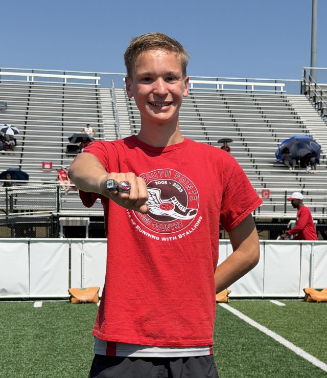 Before the meet’s first event, the South Pointe boys cross country team was honored for winning the 2025 South Carolina 4A state championship and presented with their state championship rings.