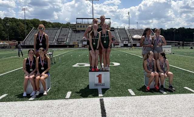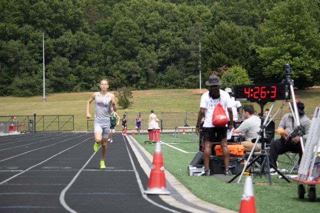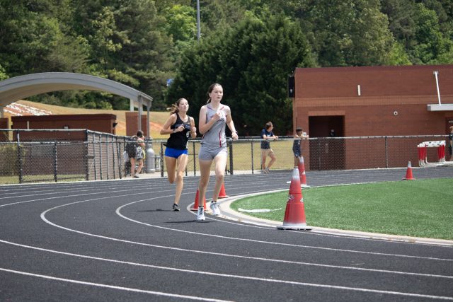 Brown’s distance double on the boys side was matched by South Pointe teammate Elizabeth Faircloth on the girls side. Faircloth won the 1600 in 5:25.08 and the 3200 in 11:21.73, with teammate Emma Kate Brown placing second in both races.
